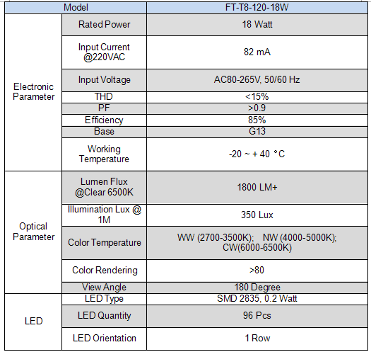 | FT-T8-120-18W | 1198 | 1212 | 26 | 304g |