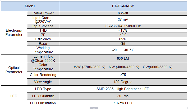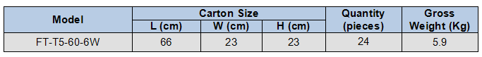 | FT-T5-60-6W | 570 | 552 | 28.4 | 24.2 | 216 |