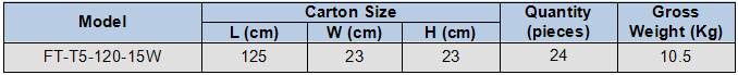 | FT-T5-120-15W | 1180 | 1162 | 28.4 | 24.2 | 395 |