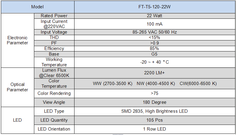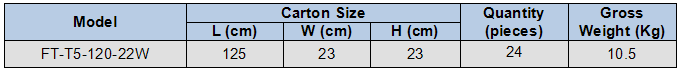 | FT-T5-120-22W | 1180 | 1162 | 28.4 | 24.2 | 395 |