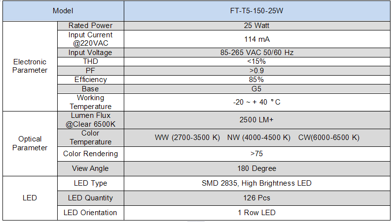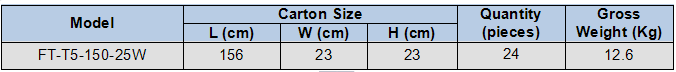 | FT-T5-150-25W | 1480 | 1462 | 28.4 | 24.2 | 470 |